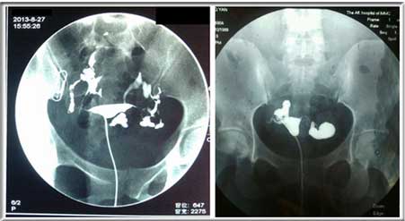1)通过输卵管造影。是目前输卵管积水的检查方法中极简便可靠的方法,x线显示,输卵管全程显影并见伞端曾粗扩张,20分钟后延迟片示两侧输卵管残留影,盆腔内无造影剂弥散。